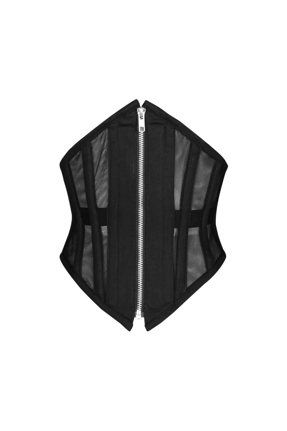 - Stylish Black Mesh Half Corset designed as a boobless corset, half cup corset, and underbust bustier.