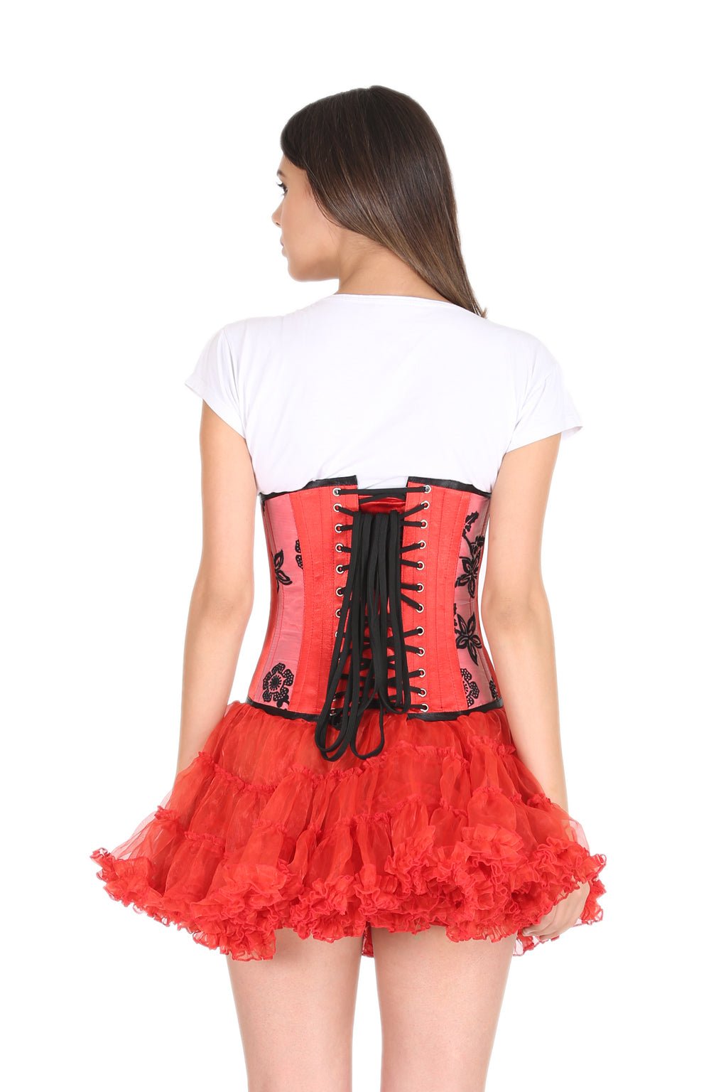 - Burlesque plus size underbust corset top in red satin with black tissue flocking