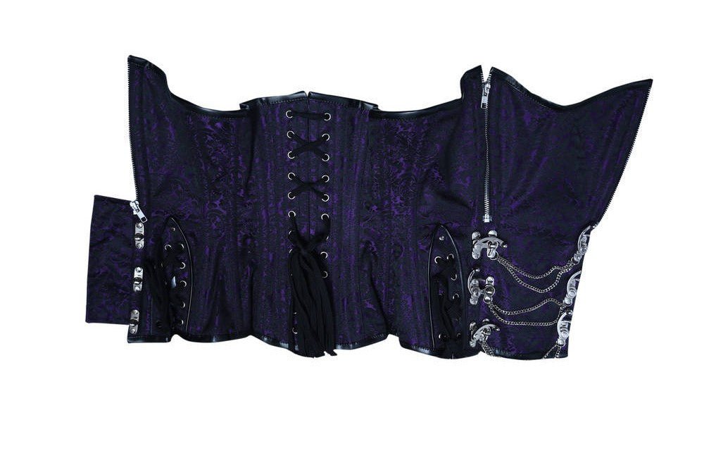 Steampunk Front Zipper Brocade Reversible Underbust Corset