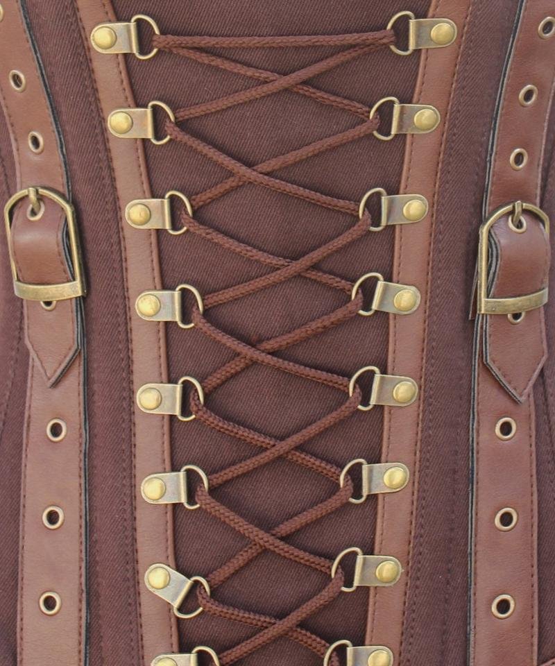 - Brown brocade steampunk corset and corset jacquard design for retro aesthetic