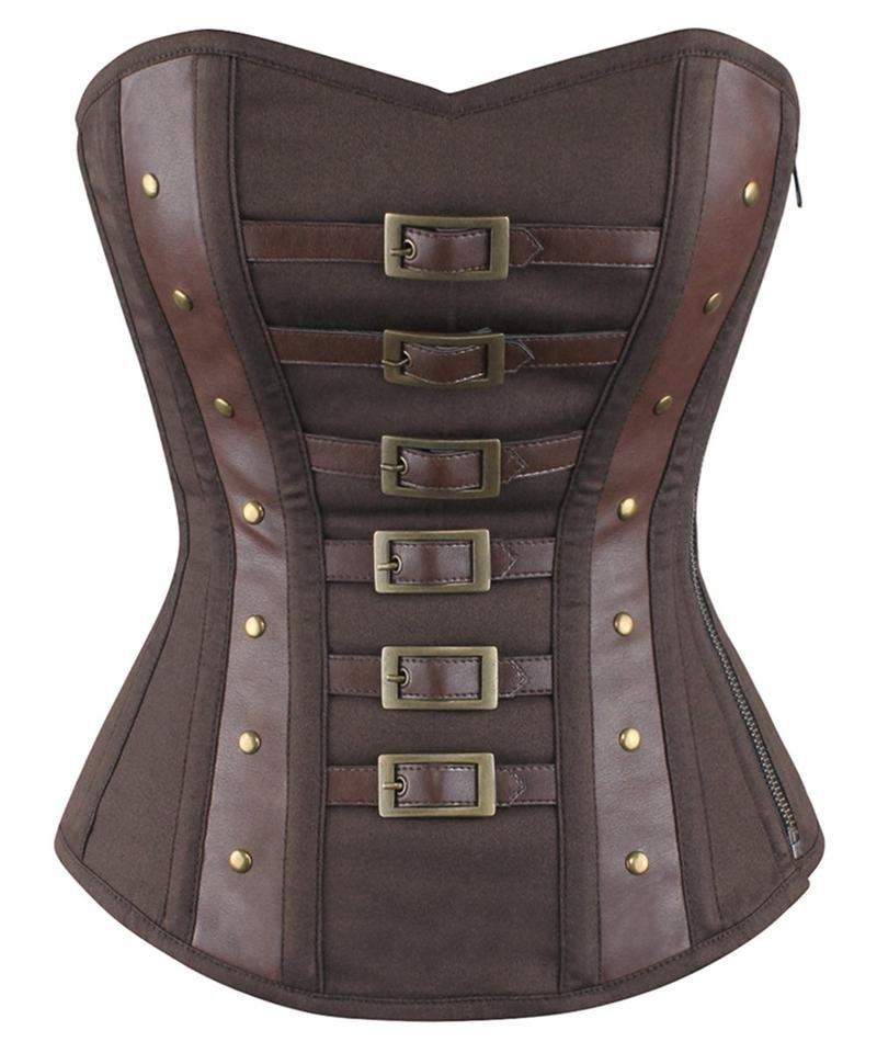 - Elegant leather overbust steampunk corset designed for regular torso women.