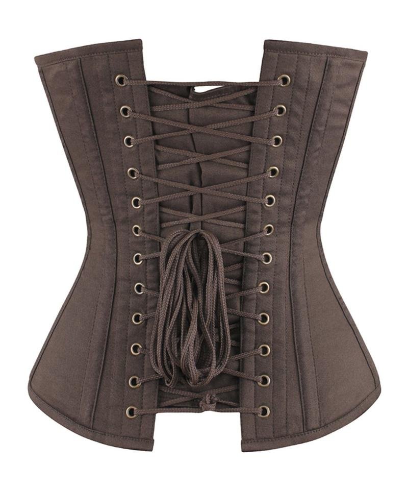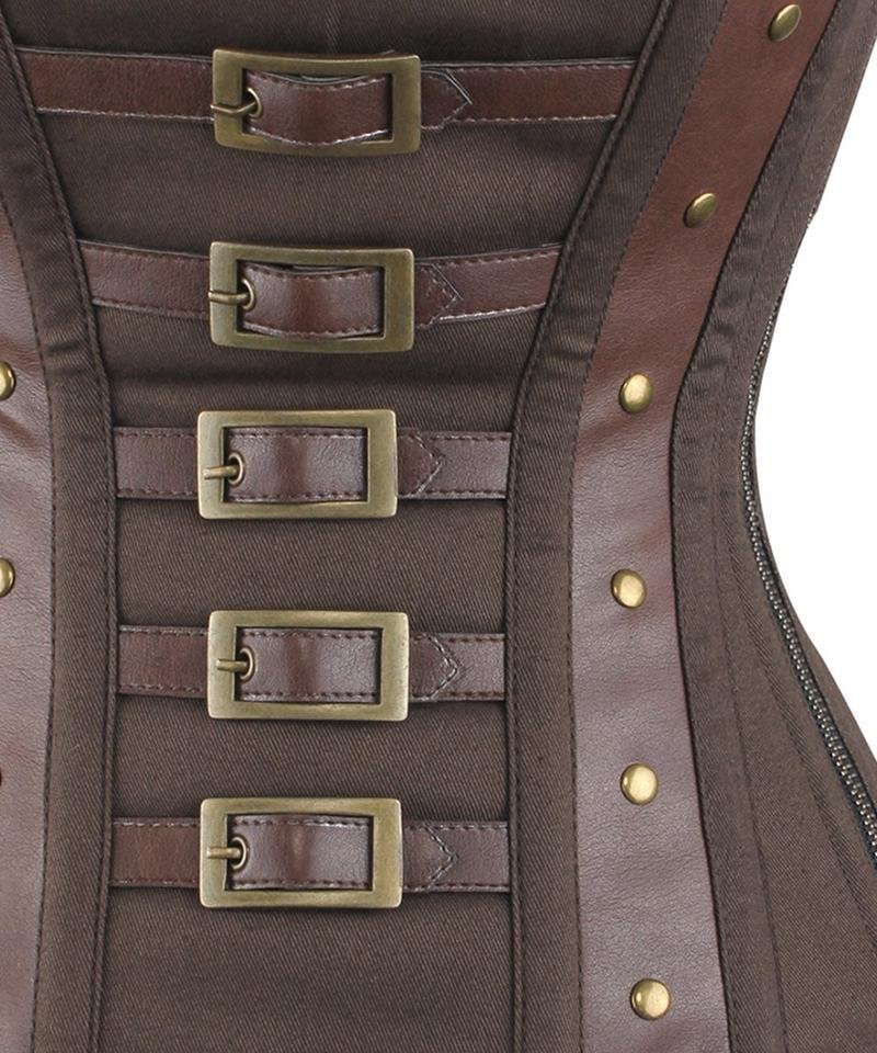 Brown Cotton Overbust Punk Corset With Neck Gear