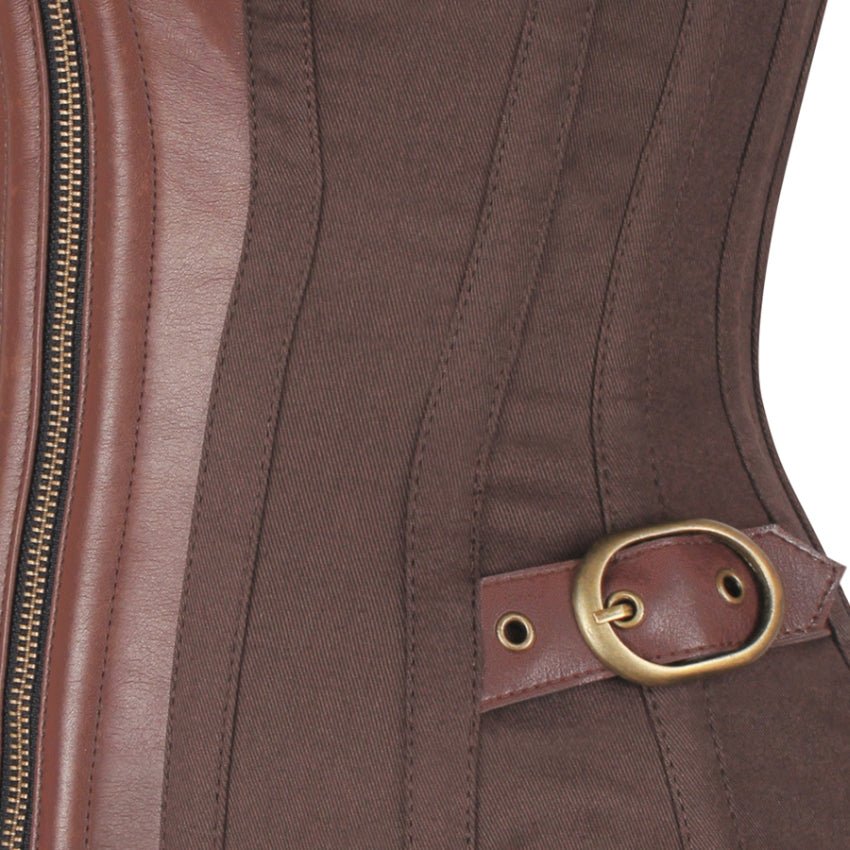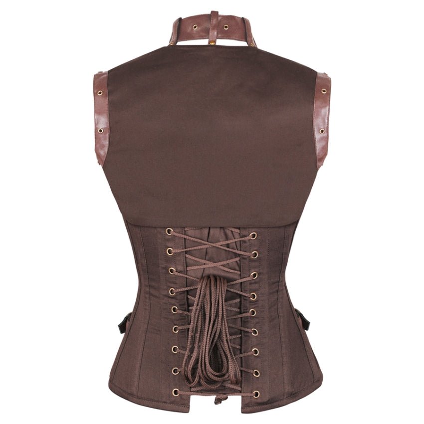 Brown Cotton Overbust Punk Corset With Neck Gear