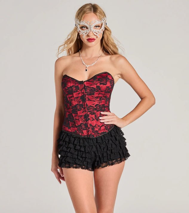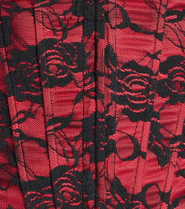 Steal the spotlight this spooky season with the Steel Boned Halloween Lace Corset. A timeless piece that defines bold, gothic glamour. This stunning corset top Halloween essential blends elegance and edge for an unforgettable night. The sheer floral lace design with a soft knit lining adds sophistication. While the flexible boning offers a structured, form-hugging fit that enhances every curve. The strapless sweetheart neckline and angled mid-length hem create a flawless, flattering silhouette perfect for any Halloween corset look.