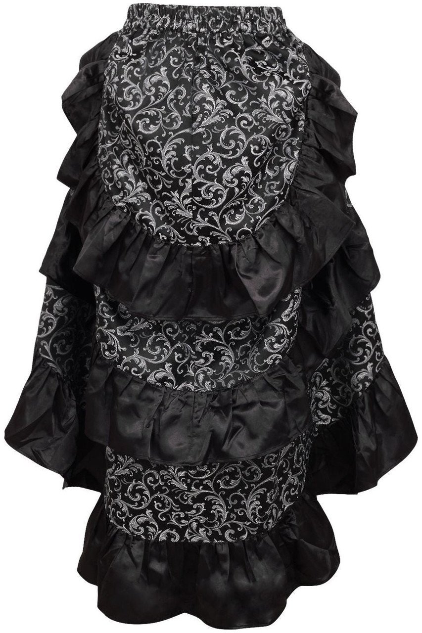 The shimmering black and silver brocade fabric gives this Halloween corset dress a regal touch. The overbust corset top Halloween design features intricate lace trim and a structured fit that enhances every curve. The front lace-up detail and full back cinching create a flattering hourglass figure that feels both sexy and powerful.