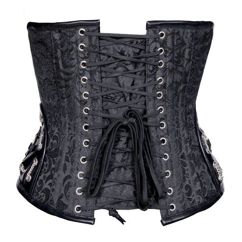 - Gothic-inspired steel boned half corset for waist shaping.