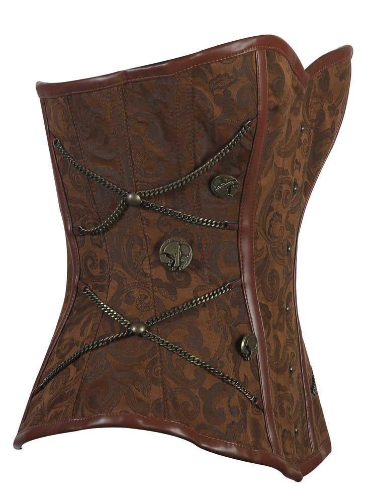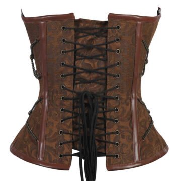 - Combines Victorian Gothic steampunk corset elegance with punk corset edge.
