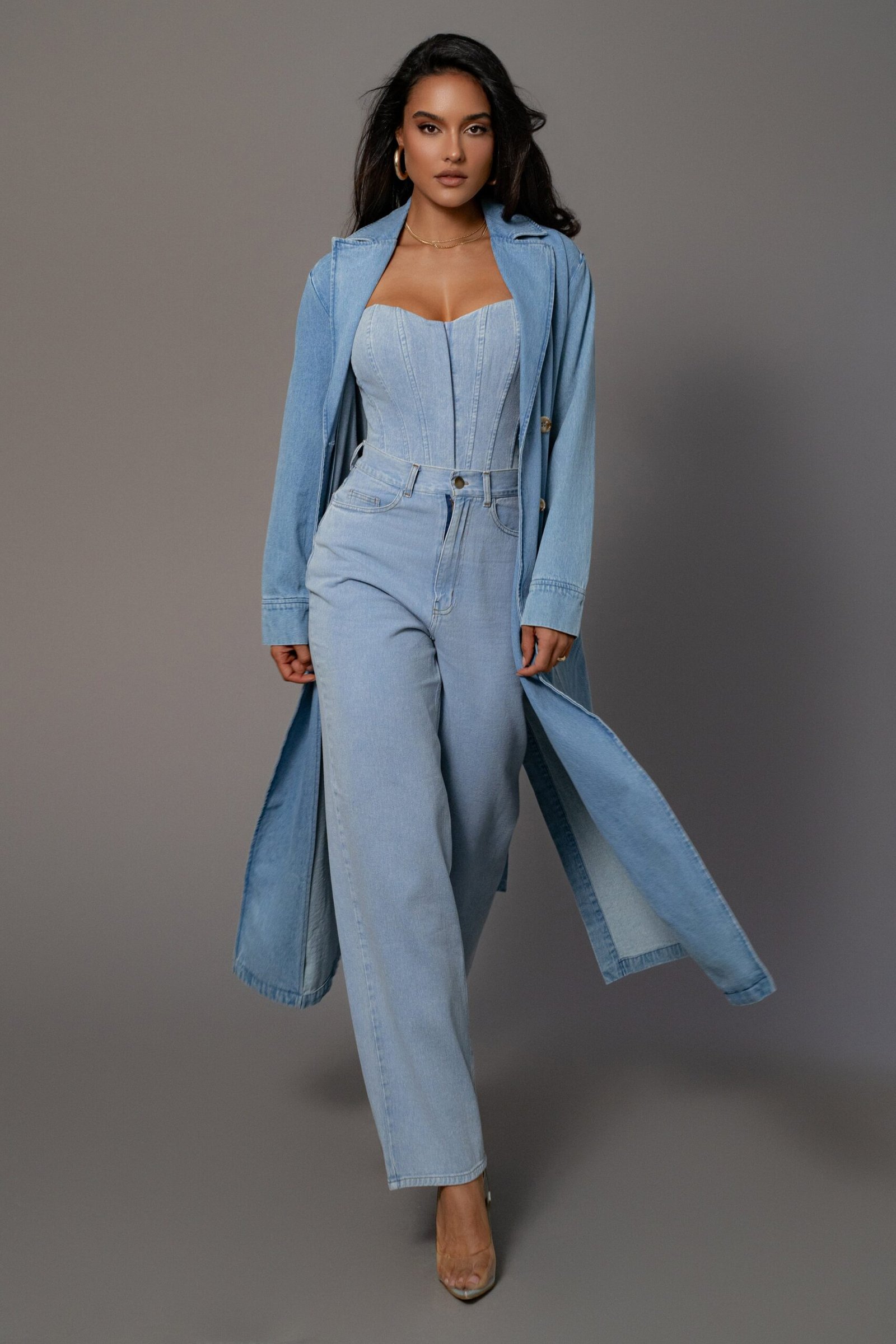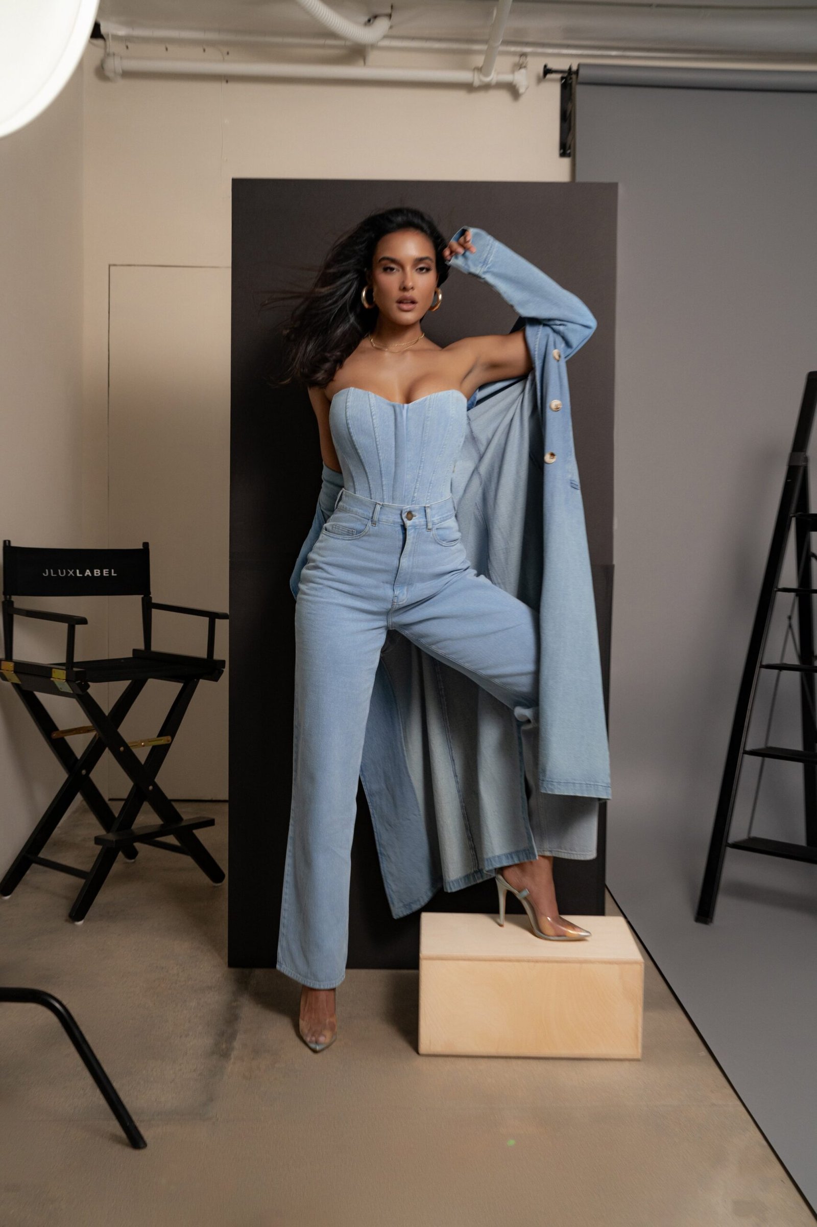 The women corset denim trend never fades. This denim bustier top proves that a blue jean corset top can be both timeless and modern.