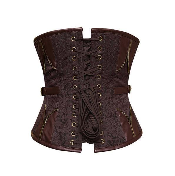 Steampunk Brown Brocade Buckle Belt Overbust Corset